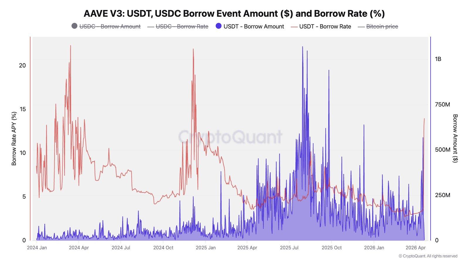 Meanwhile, the thinning liquidity saw Aave’s borrowing rates for USDt (USDT) rise from 3% to 14%, marking the highest figures since December 2024, wrote Julio Moreno, the head of research at analytics platform CryptoQuant, in a Monday X post.
