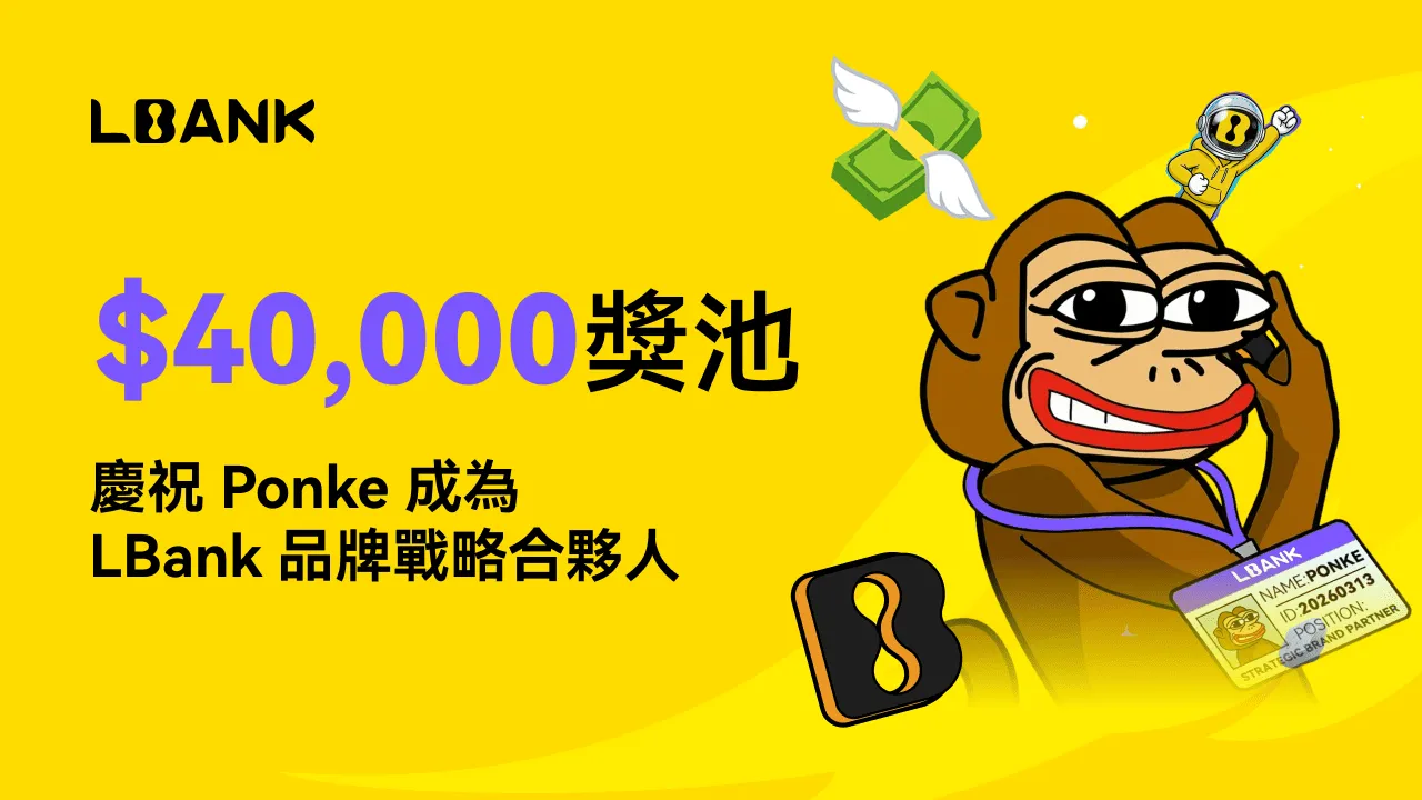2026年3月13日,總部位於新加坡的加密貨幣交易所LBank宣布與Web3 IP項目PONKE達成品牌戰略合作,並推出總獎池高達40,000 USDT的「加入猿族大軍」獎勵計畫(活動時間:2026年3月13日至4月11日),涵蓋五大活動賽道,旨在結合專業交易與迷因文化,帶來「交易即娛樂」體驗,降低全球用戶參與門檻,同時強化其在迷因幣與Web3 IP合作領域的地位。